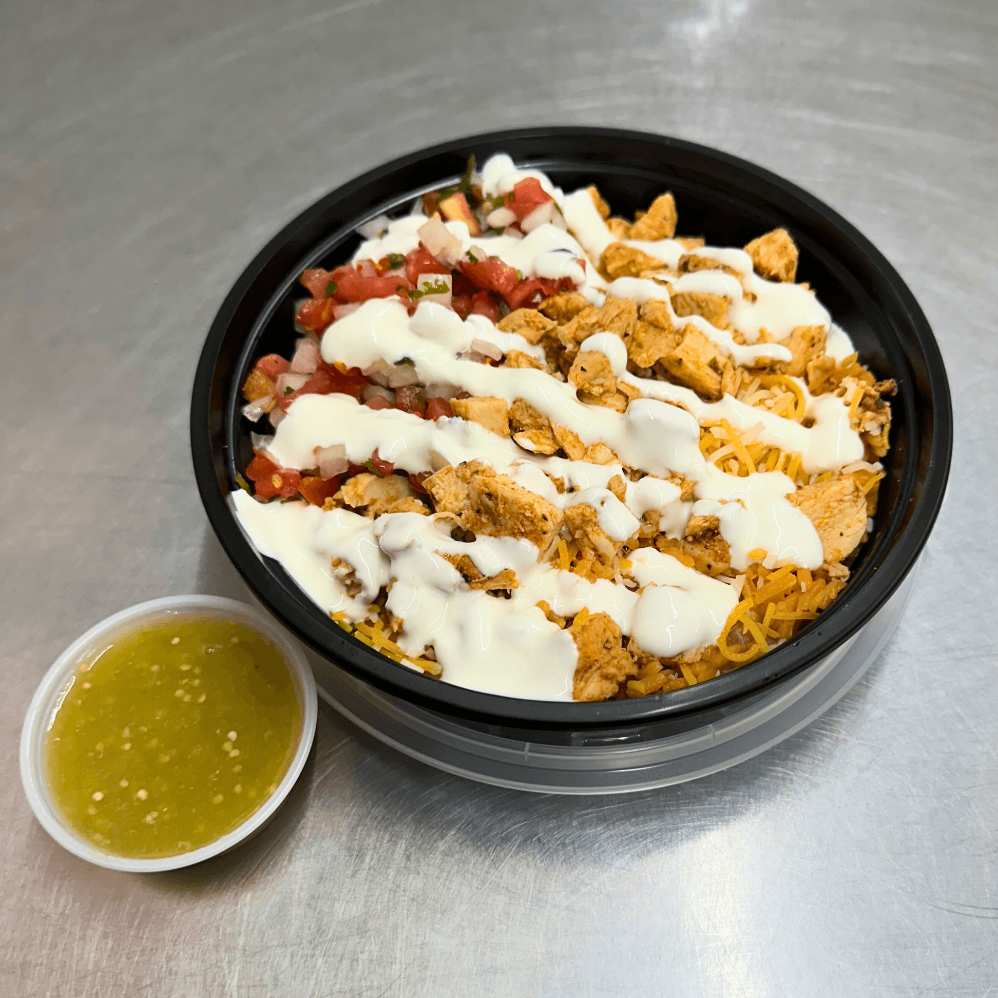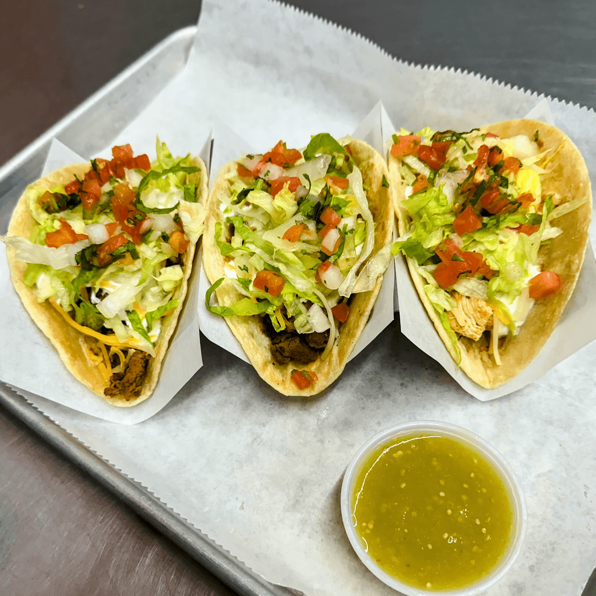 Our loaded taco, nestled on a lightly toasted flour tortilla and piled high with your choice of meat, crisp lettuce, pico, creamy sour cream, and topped with your favorite salsa. It's a flavor-packed fiesta in every bite!